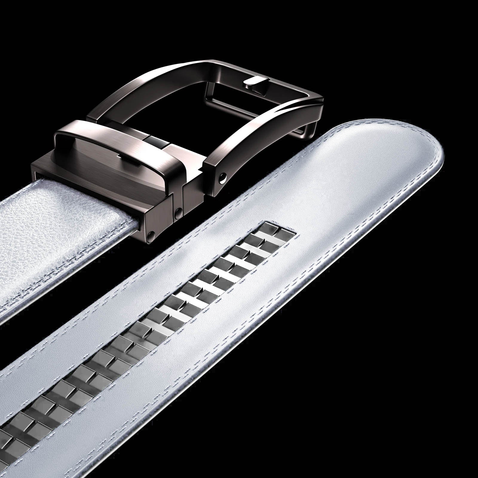 La fibbia automatica ti permette di regolare la cintura al millimetro, senza fori che si rovinano e senza limiti di taglia: si adatta perfettamente al tuo corpo in ogni momento.